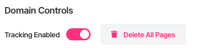 The Delete All Pages button removes every monitored URL for the current domain. This action permanently deletes all tracking data and removes the domain from your active tracking list.