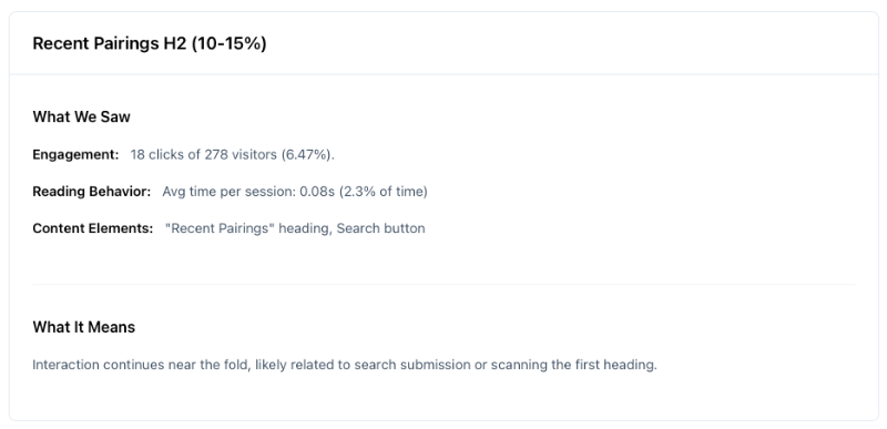 | Click patterns | Where visitors interact and what they ignore |