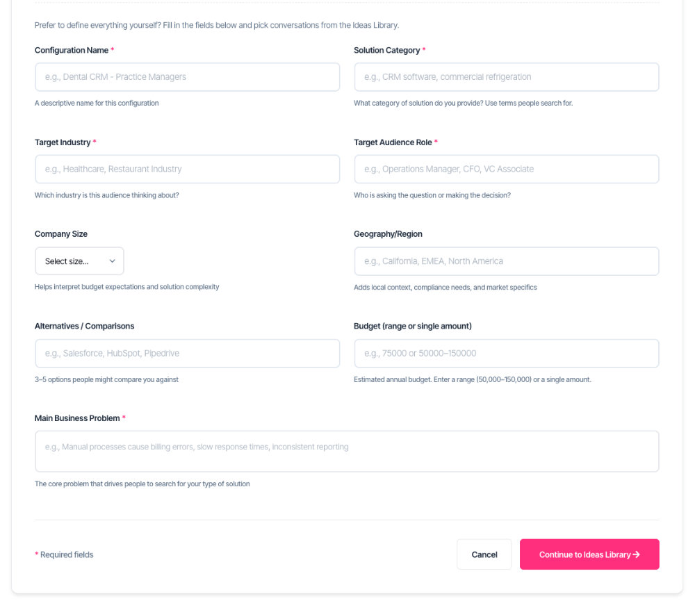| Target Audience Role | Job titles of buyers (e.g., "Operations Manager") |