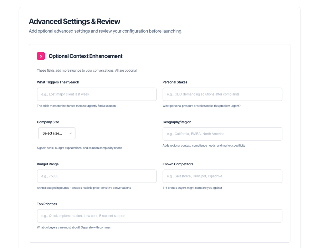 | Buyer Persona | Decision-maker role | "VP of Sales" |
