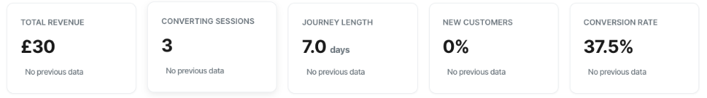 - Cookieless mode: Limited to single-session tracking, which may affect metrics like Journey Length and New Customers