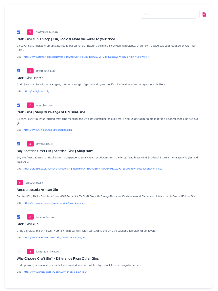 SERP360 automatically pre-selects the top five results. Change these selections based on your analysis needs.